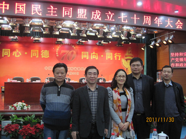 2011年11月30日上午,湖南民盟紀念中國民主同盟成立70周年大會,在長沙市各民主黨派省委機關(guān)會議中心召開。民盟中央副主席溫思美,中共湖南省委常委、統(tǒng)戰(zhàn)部部長李微微,省政協(xié)副主席、盟省委主席楊維剛,省人大原副主任、民盟湖南省委原主委謝佑卿,民建湖南省委主委賴明勇,盟省委副主委湯濁、李利君、陳洪出席了會議或講話。