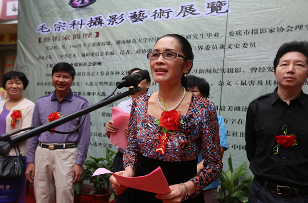 9月13日,中國民主同盟盟員、婁底市政協委員、婁底市著名攝影家毛宗科攝影藝術展在婁底市新星茶樓開幕,展出了毛宗科近年來60多幅精品力作。本次攝影展由民盟婁底市委、婁底市商務局、婁底市文聯主辦,中共婁底市委常委、婁底市委宣傳部長伍美華宣布攝影展開幕。婁底市政協副主席、民盟婁底市委主委邵瑛致開幕詞,婁底市政協副主席譚懷連主持開幕式,婁底市政協副主席劉志偉,中南出版集團副總經理、湖南文藝出版社社長劉清華,中共婁底市委統戰部常務副部長李友元,婁星區代區長黃大生等領導出席開幕式并剪彩。數百攝影愛好者、盟員和群眾前來參觀展覽。