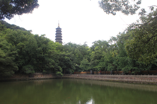 進(jìn)入天童寺,首先映入眼簾的是兩個萬工池,舊為放生池。池水清澈,碧瓦朱墻倒映入池,更添佳趣。據(jù)說池上方的琵琶石,以足跺之,鏗鏘發(fā)音如琵琶聲。