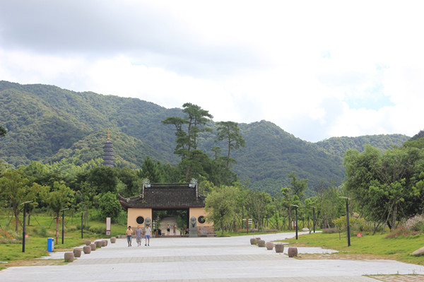 從“鳳崗修竹”上到半山腰的千佛塔,天童寺風(fēng)光盡收眼底:山頂藍(lán)天白云;山坡茂林修竹;山腳紅墻寺院。“我見青山多嫵媚”,用來形容天童寺的山水形勝,最為恰當(dāng)。而且我認(rèn)為“嫵媚”一詞,即是江浙山山水水與江浙人性格的全部寫真!