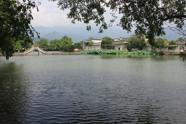 月沼水面有1000多平方米,為半月形。這里是宏村的中心,也是古代徽商怨婦們的聚會(huì)之所。她們或在岸邊搗衣漿洗;或在水邊細(xì)語(yǔ)傾訴;或在池邊紅淚偷垂;或在水中顧影自憐……;……。她們思念遠(yuǎn)方親人,嘆息似水年華,寄托虛幻夢(mèng)想,也怨恨著“商人重利輕別離,前月浮梁賣(mài)茶去”……