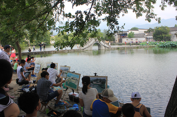 如今的月塘,常年碧綠,塘面水平如鏡;塘沼四周青石鋪展,青磚黛瓦馬頭墻的古建筑分列四旁,倒影映在水中;幾只白鵝在水面輕拔綠波,掀起陣陣漣漪;池塘邊,許許多多未來(lái)的畫(huà)家,正在一點(diǎn)一筆,埋頭寫(xiě)生……