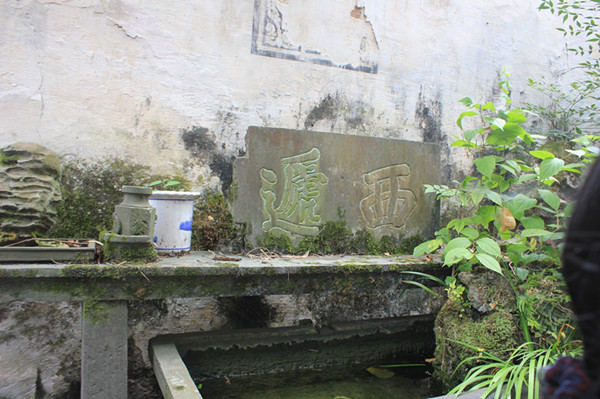 西園有很多精美的石雕。前院的石條上陳放著“西遞”兩字石刻,它是古代的村碑,原來(lái)放在村口,“文革”中被丟置一旁,是現(xiàn)在房屋主人抬放家中保存至今。據(jù)說(shuō)有人愿出10萬(wàn)元收購(gòu)這塊村碑,主人不賣(mài)。村碑即停放西園院內(nèi),供游人參觀拍照。