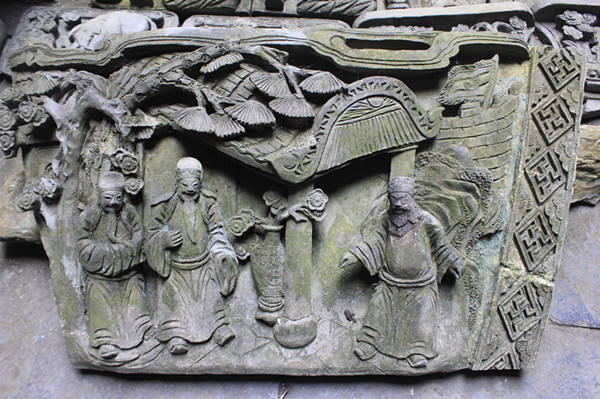徽派建筑廣泛采用磚雕、木雕、石雕。可以說(shuō),所有建筑材料上,無(wú)不雕龍畫(huà)鳳。磚雕主要在門(mén)罩、窗楣、照壁上,在大塊的青磚上雕刻人物、蟲(chóng)魚(yú)、花鳥(niǎo)等等圖案;木雕集中在屏門(mén)隔扇、窗扇、樓層欄板等建材上,多人物、山水、花草、鳥(niǎo)獸等等圖案;石雕主要表現(xiàn)在祠堂、寺廟、牌坊、塔橋及民居庭院、門(mén)樓、欄桿、照壁等等石材上,多為龍風(fēng)、仙鶴、猛虎、雄獅等圖案。