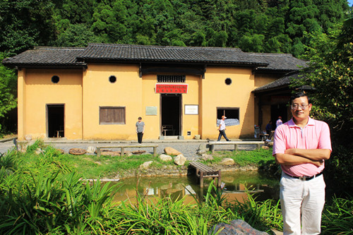 廳堂擺了一張八仙桌,桌上放了一些餐具。我們一行圍坐在八仙桌周邊,模仿召開了“十九軍前委會議”—我們一行19人甫抵井岡山,當地導游為了方便招呼,便將我們戲稱為來自婁底的“十九軍”。我與“十九軍”軍長還端起桌上的飯碗,“品嘗”著當年的紅米飯、南瓜湯,不時擺出吃得津津有味的POSE。旁邊同仁手中的照相機“咔嚓咔嚓”響個不停。所謂“老夫聊發少年狂,左添飯,右喝湯,千里迢迢上井岡”,為紅色之旅增添了許多放飛心情的佐料!