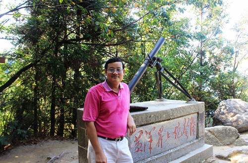 現在,人們在當年戰場上的這片亂石岡上,立了一個方長形的石碑,基座上雕刻著毛體書法“黃洋界上炮聲隆”幾個字,上面放著一只小鋼炮,炮口正對著北面的山下。