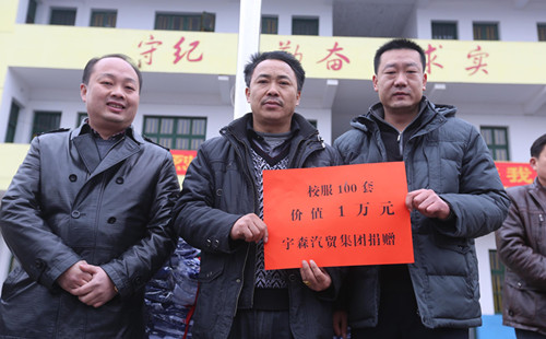 婁底宇森汽貿贈送160套新校服給惠民學校的學生喜慶新年。