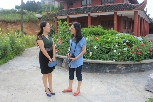 邵瑛(右)與麻頭山瑤族自治鄉(xiāng)唐鄉(xiāng)長親切交流。肖春華攝影。