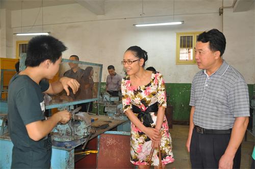 7月15日,邵瑛(右1)一行在冷江技校負責人陪同下,考察冷江技校實訓基地。羊小慶攝