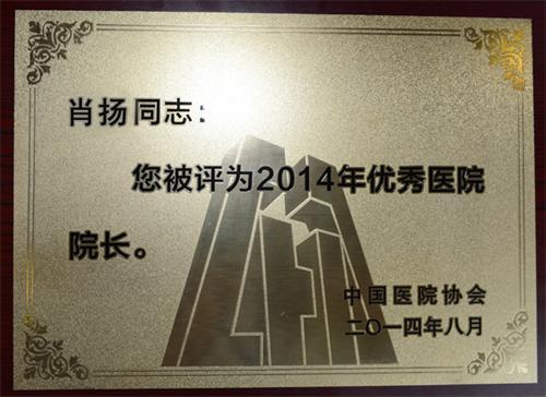 肖揚(yáng)榮獲2014年“全國(guó)優(yōu)秀醫(yī)院院長(zhǎng)”稱號(hào)