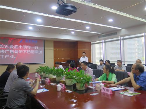 8月4日一8日,婁底市政協副主席、九三學社婁底市委主委劉繼清,婁底市政協副主席、民盟婁底市委主委邵瑛,率隊赴廣東省廣州、佛山等地調研不銹鋼產業,并拜訪了當地湖南商會負責人。市人大常委會副秘書長、九三學社婁底市委副主委錢局新,市政府副秘書長肖寒,市政協提案委主任、民盟婁底市委副主委朱宏志,婁底市人民政府駐廣州辦事處主任梁伍明,九三學社婁底市委副主委梁衛平,市經信委、漣鋼規劃部等相關負責人參加調研。