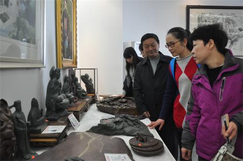女盟員們流連于溪硯展覽大廳,饒有興趣地對溪硯進行了品鑒。