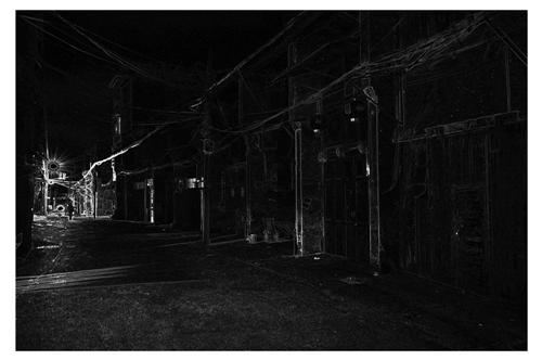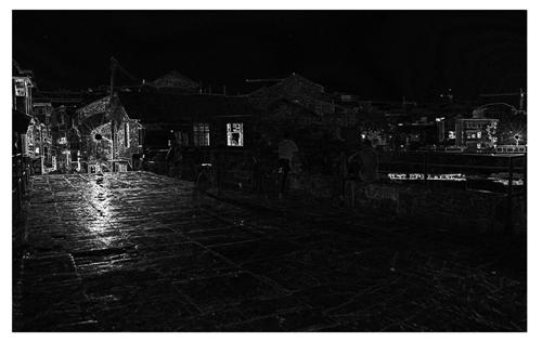 橋頭兩端的小街蜿蜒細(xì)長,臨街門鋪古老滄桑,似乎沒有盡頭深夜看