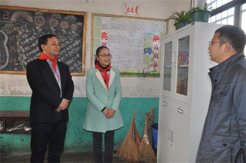 捐贈(zèng)儀式結(jié)束后,邵瑛一行走進(jìn)教師辦公室、教室,察看捐贈(zèng)物品,對(duì)