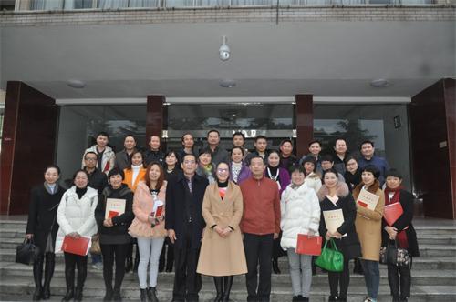 邵瑛(前排中)、羊小慶(前排右5)、肖建泳(前排左5)等和新盟員合影