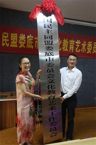 邵瑛向民盟婁底市委文化教育藝術委員會授牌。民盟婁底市委委員、文