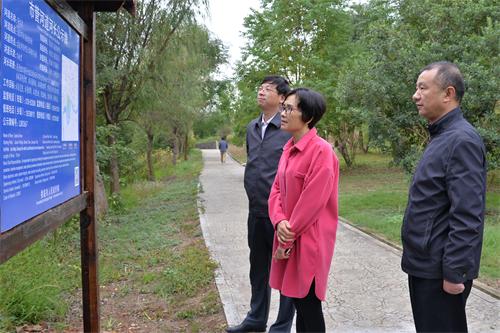 邵瑛(中)察看河長制公示牌