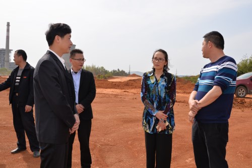 邵瑛一行現場察看了湖南山力新材料有限責任公司的擬搬遷地建設情況。隨后在雙峰縣經開區召開了調研座談會。