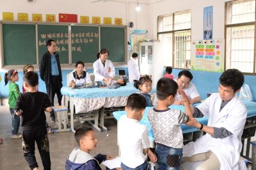 2018年5月10日,民盟婁底市委赴“燭光行動”定點扶持學校—漣源市斗笠山鎮(zhèn)惠民學校,為該校學生免費體檢。婁底市婁底職業(yè)技術(shù)學院資產(chǎn)管理處處長、民盟婁底市委副主委肖建泳出席義診活動。