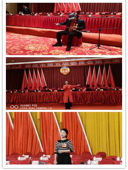 三是盟員藝術家精彩獻藝。今年市兩會期間,2名新增補的盟員政協委員劉劍、譚明哲,市人大代表陳艷,分別在政