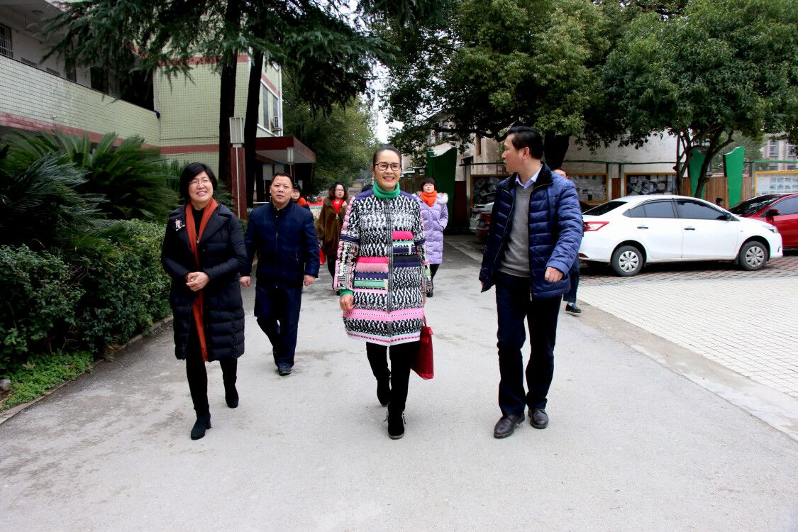 邵瑛(中)一行參觀婁底六中校園