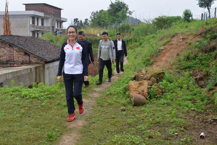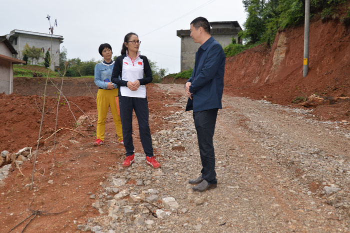 邵瑛(中)督查村小公路和飲水工程進(jìn)度