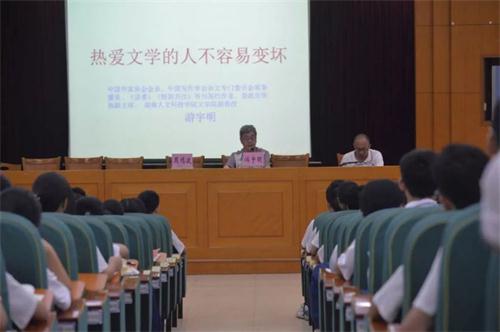 2019年6月19日,廣東省尹軍成名師工作室和周鴻波名師工作室研修活動(dòng)下午場(chǎng)在佛山二中舉行,著名作家游宇明先生應(yīng)邀為工作室的成員和高一年級(jí)四個(gè)班的學(xué)生作學(xué)術(shù)報(bào)告——《熱愛(ài)文學(xué)的人不容易變壞》。