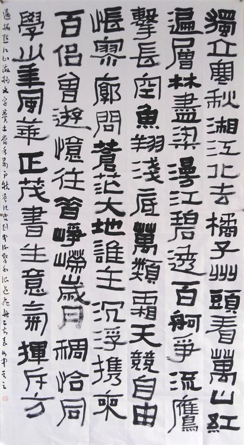 同日,慶祝中華人民共和國成立70周年暨民盟湖南省級組織成立70周年盛世盟韻書畫展在長沙簡牘博物館展出。婁底盟員鄔小明的國畫《家家都把公路通》,劉翼軍的書法作品《毛澤東詞》、趙晉的書法作品《毛澤東詞》、姜新民的火烙作品《人人愛唱東方紅》、賀子文的書法作品《毛澤東與柳亞子唱和詩》等5名同志的作品入展,作品入編《盛世盟韻——慶祝中華人民共和國成立70周年暨民盟湖南省級組織成立70周年書畫集》。