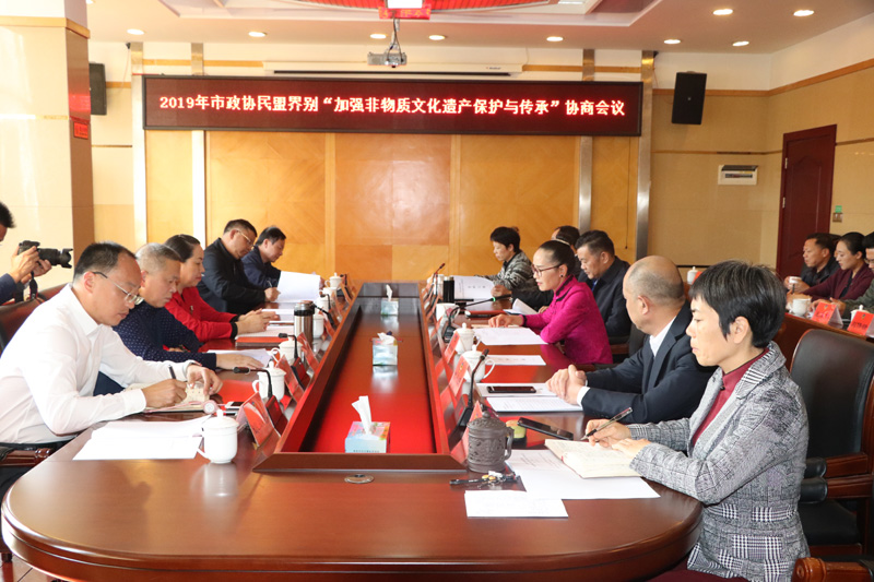 會上,邵瑛介紹了2019年市政協民盟界別協商籌備情況。根據中共婁底市委、市政協工作部署,2019年,市政協民盟界別開展《加強非物質文化遺產保護傳承》課題協商,由民盟婁底市委組織實施。2019年4月,民盟婁底市委成立了由市政協副主席、民盟婁底市委主委邵瑛任組長的調研組,5-10月,調研組赴市文旅廣體局和各縣市區,對全市非遺工作部門的機構設置,人員、經費保障情況,非遺項目的保護、傳承、宣傳和利用情況,非遺項目與旅游、傳統工藝制作、美食等產業的融合情況進行了調研。根據調研需要,調研組又赴廣州、佛山、懷化、岳陽、湘西等地學習交流,形成了調研報告《讓傳統文化綻放時代之花》。