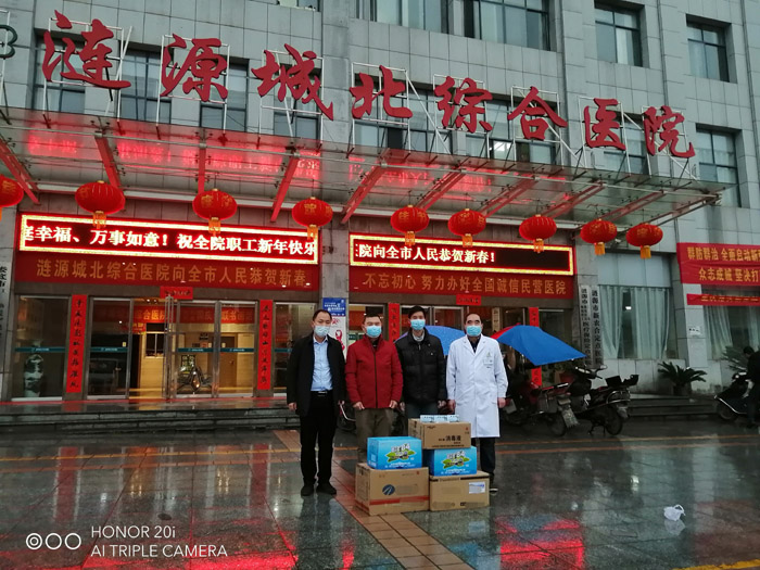 漣源市城北醫院院長劉首紅(左二)為七星街鎮捐贈防疫物質