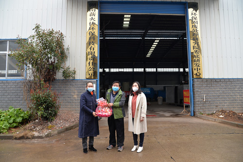 在湖南薪火傳環保科技有限責任公司,邵瑛給公司負責人、湖南人文科技學院教授、盟員陳慶平送上水果和慰問金,對他冒著生命危險,逆行武漢,處理因疫情產生的醫療垃圾,為幫助武漢打贏疫情阻擊戰做出的突出貢獻表示敬佩和感謝!稱贊他是婁底民盟的驕傲。