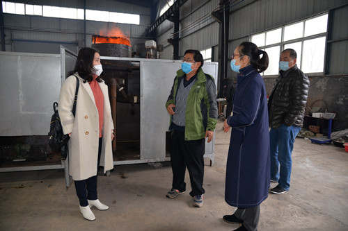 邵瑛(右1)到薪火傳環保科技有限公司調研醫療垃圾處理設備研發情況
