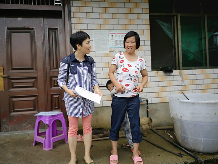 邵瑛(中)詢問幫扶戶家庭情況