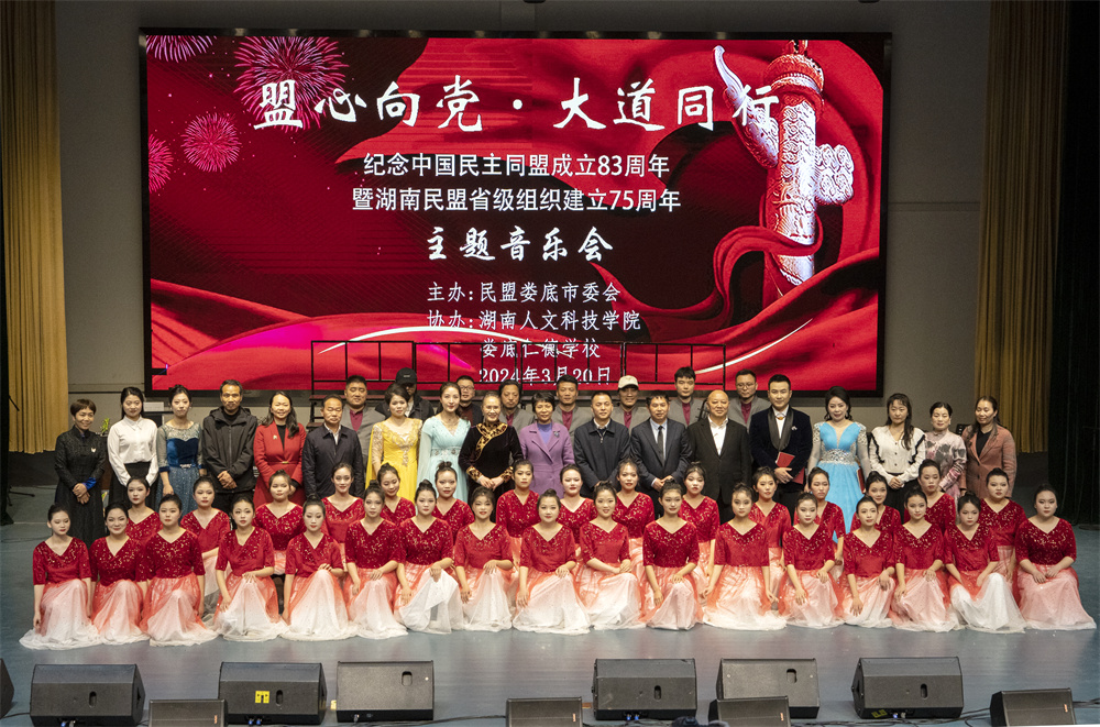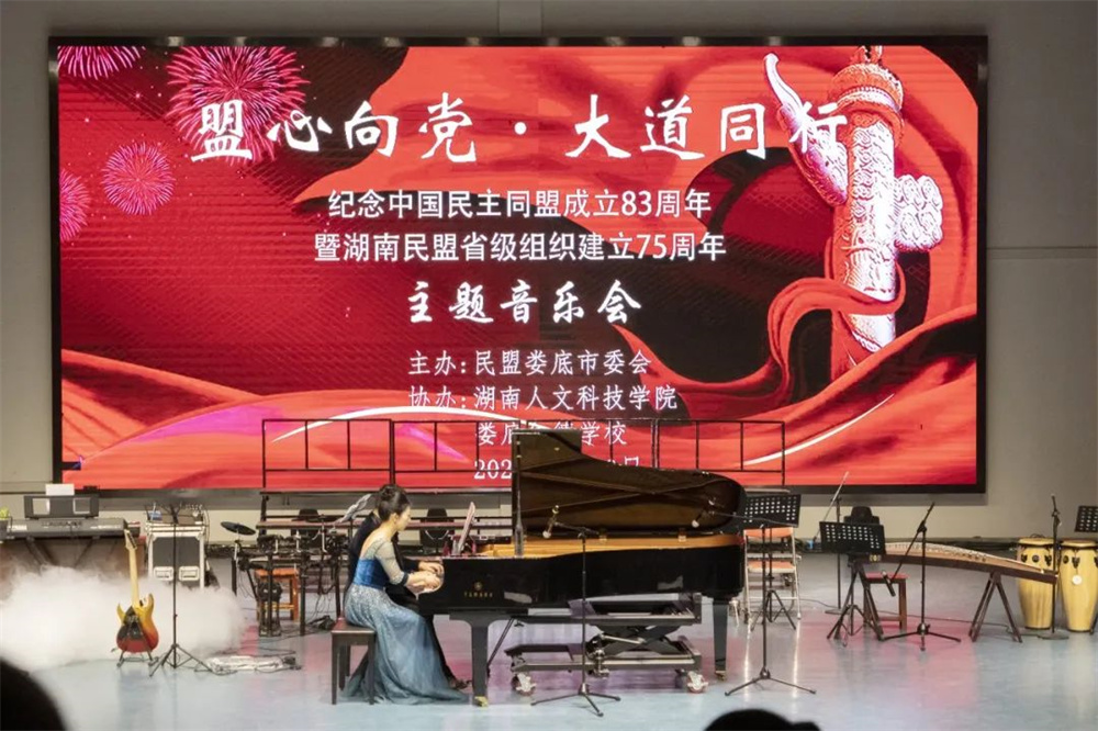 為慶祝新中國和人民政協成立75周年,紀念中國民主同盟成立83周年暨湖南民盟省級組織成立75周年,3月20日,由民盟婁底市委會主辦,湖南人文科技學院、婁底仁德學校協辦的“盟心向黨·大道同行”主題音樂會在湖南人文科技學院音樂廳舉行。