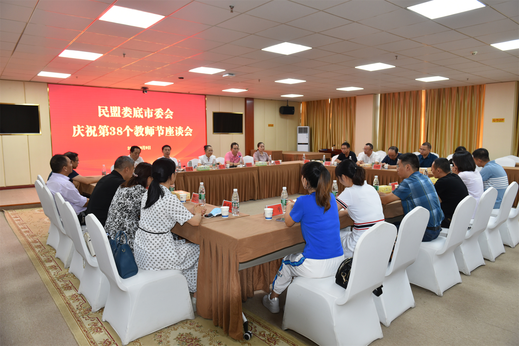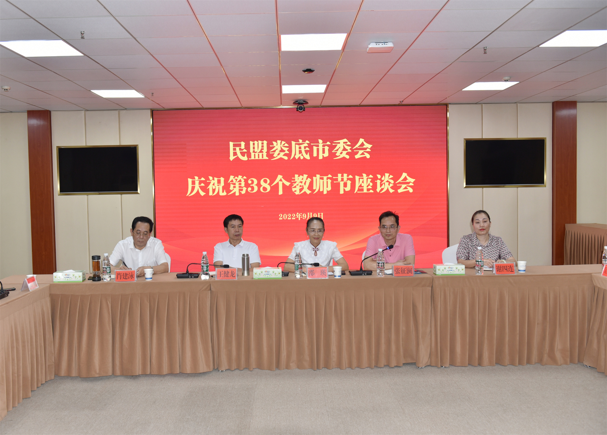 為慶祝第38個教師節,助力湖南民盟第一屆職教論壇舉辦,9月9日,民盟婁底市委會在婁底職業技術學院舉行慶祝第38個教師節活動,并召開座談會。正在外地出差的婁底市政協副主席、民盟婁底市委會主委、市文旅廣體局副局長傅小松發來賀信,祝賀會議的召開。婁底市政協原副主席、民盟婁底市委會原主委邵瑛主持會議。中共婁底職業技術學院黨委書記朱忠義出席活動,婁底職業技術學院校長張征瀾致歡迎詞,婁底職業技術學院黨委副書記王健龍,民盟婁底市委會副主委謝四連,婁底職業技術學院顧問、民盟婁底市委會原副主委肖建泳出席會議。