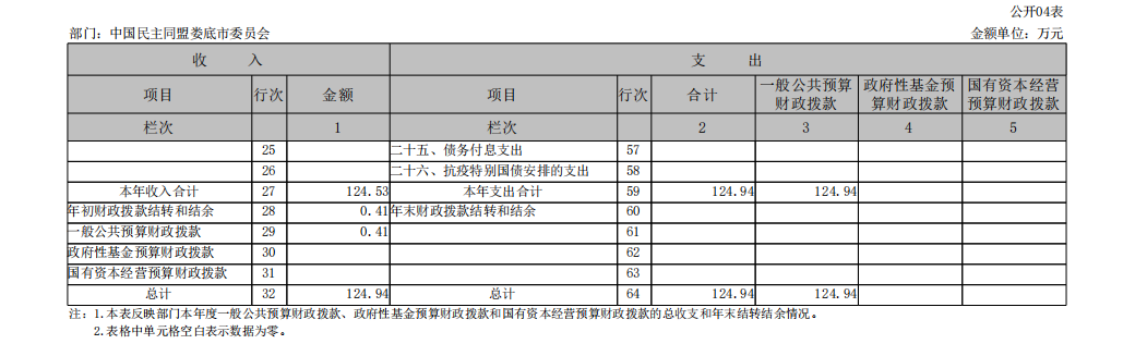 2022年度中國(guó)民主同盟婁底市委員會(huì)部門決算