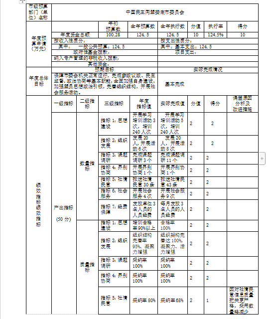 2022年民盟婁底市委會(huì)既定績(jī)效目標(biāo)均已超額完成。