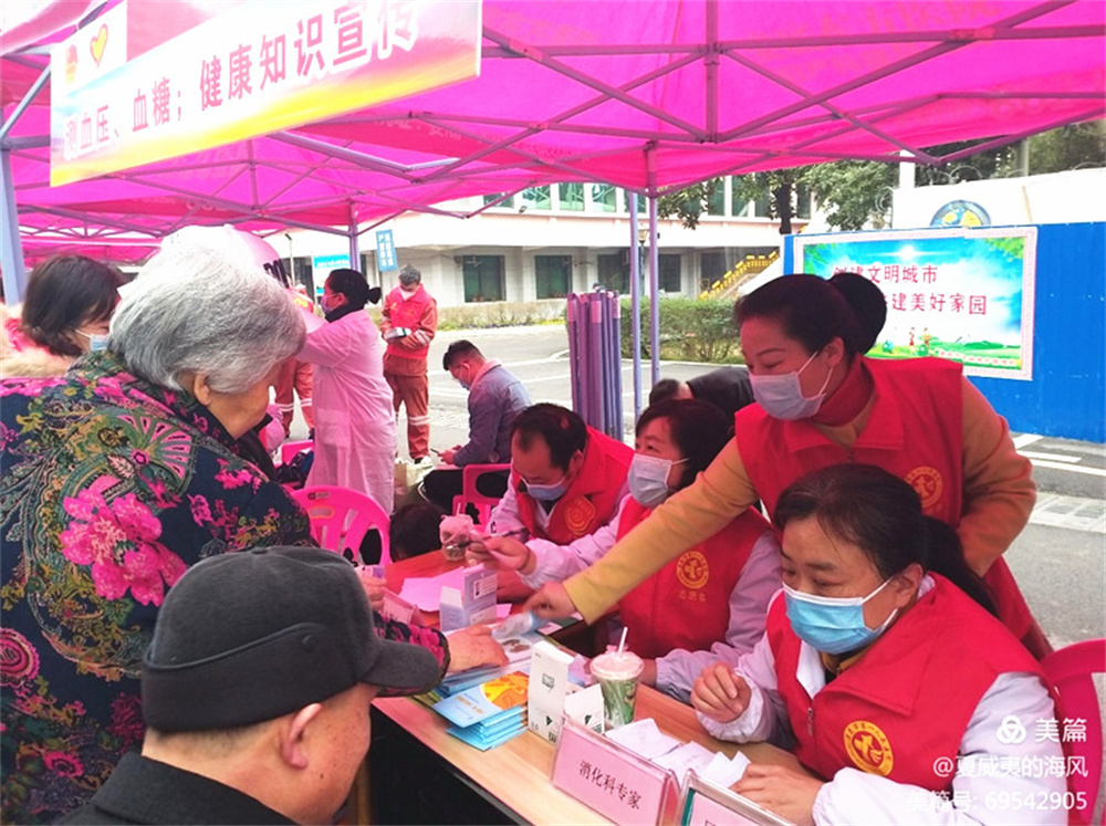 活動現場,鋼城區域的盟員們發揮自己的優勢,組織了一支“義診、健康咨詢”隊,三個支部主委易俊、劉禮義、周騫負責組織、發放資料,盟員吳健、胡文才用航拍記錄整個活動現場,盟員醫師李泓俊、何志剛、彭培艷、毛志群、肖和、扶明華及部分入盟積極分子進行測血壓、血糖及健康知識咨詢等工作。一上午的功夫,有近600人接受了志愿服務,市民對活動紛紛點贊。