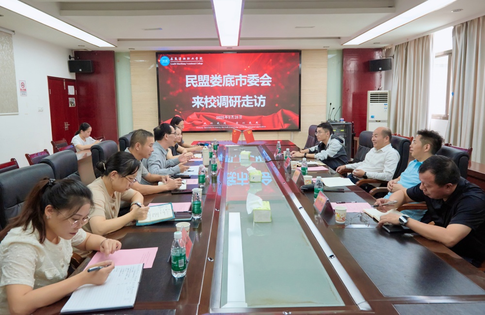 9月28日,婁底市政協副主席、民盟婁底市委會主委傅小松率隊赴婁底瀟湘職業學院,走訪盟員代表性人士、考察入盟積極分子,并開展民辦職業教育高質量發展調研。婁底瀟湘職業學院黨委書記周迎杰,民盟盟員、校長蔣建初陪同調研并參加座談會。