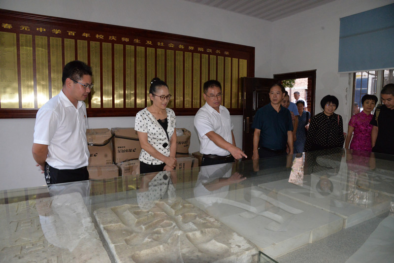 座談會后,春元中學校長唐啟明等陪同邵瑛一行,參觀了春元中學校史陳列館等校園設施。