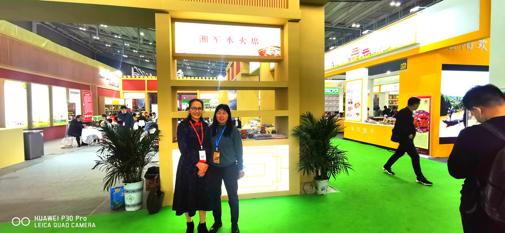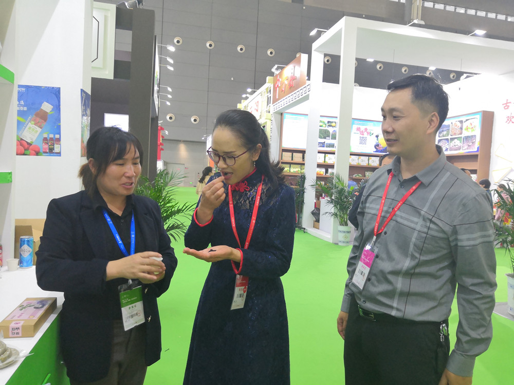 巡展期間,邵瑛與參展婁底商家進行了親切交談,了解商品展銷情況并為他們推薦產品。在盟員周殿波創辦的漣源市新綠農業科技有限公司展位,邵瑛了解到公司選擇生態環境良好的龍山山腳作為水稻種植基地,所產富硒大米、紫米品質優良、口感好,深受消費者喜愛。邵瑛對其充分發揮學術專業特長,長期扎根基層、潛心農業研究和開發表示贊賞。作為婁底民盟2019年重點調研課題《讓傳統文化綻放時代之花——婁底市非物質文化遺產的保護與傳承調研報告》重點研究、推介對象之一的湘軍水火席也走入了農博會。邵瑛現場品嘗,為其主打菜旗幟肉、合菜、酸辣小腸湯等菜品做宣傳、推介。冷水江泗元家庭農場的各類壇子菜、有機菜,李子灣農業有限公司的柚子及柚子加工產品,湖南威銘農業(牛山園)農業綜合開發有限公司生產的金秋梨、梨膏、梨干片,新化湖南昭博農林科技有限公司生產的桑葚主打系列產品、無花果主打系列產品等,都得到了邵瑛的關注。邵瑛就改進產品包裝、精準產品廣告、創立自主品牌、加大宣傳力度等方面與商家進行了深入探討和交流。她鼓勵大家,要發揚創新精神,引入科技團隊,對傳統農產品生產及深加工進行研發,提升農業質量效益和競爭力,為鄉村振興貢獻力量。