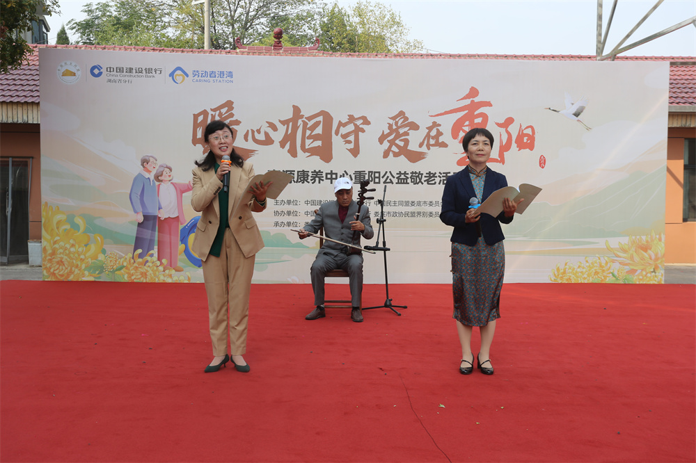 為弘揚中華民族孝親敬老的傳統美德,10月11日,民盟婁底市委會聯合中共婁底市委社會工作部、中國建設銀行婁底分行、婁底市政協民盟界別委員工作室在婁底市嘉源康養中心舉辦重陽公益敬老活動。婁底市政協原副主席、一級巡視員、民盟婁底市委會原主委邵瑛出席活動并致辭,民盟婁底市委會專職副主委王紅貴、婁底市政協委聯委副主任范麗、中共婁底市委社會工作部志愿服務科彭雅等出席。