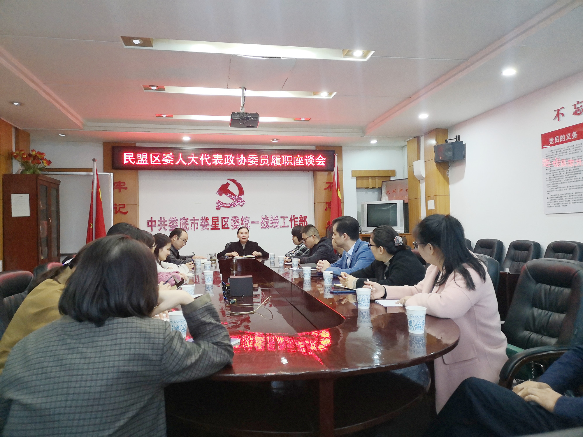 10月20日下午,民盟婁星區(qū)委會在區(qū)委統(tǒng)戰(zhàn)部會議室召開新一屆盟員人大代表、政協(xié)委員履職座談會,會議由區(qū)政協(xié)副主席、民盟區(qū)委會主委王文成主持,19名市區(qū)兩級人大代表(候選人)、政協(xié)委員參加會議。