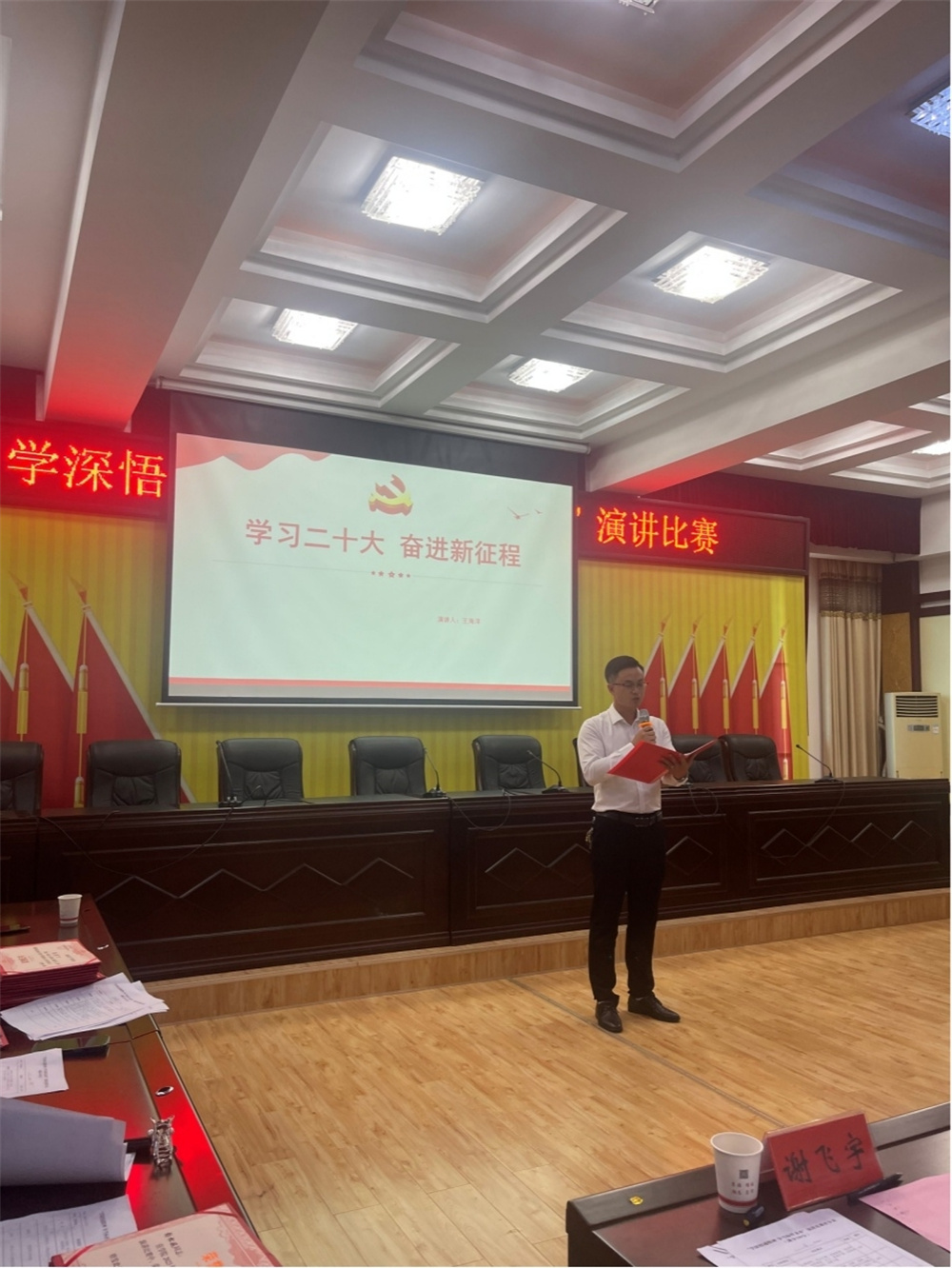 比賽中,兩位老師以飽滿的熱情、優美的語言激情演講,充分展示了豐富的理論知識和良好的學識素養,不時贏得臺下觀眾的熱烈掌聲。尹巧英老師以《與榜樣同行,讓青春在奮斗中綻放》為題,講述了身邊師德高尚、甘為人梯的同事們樂于奉獻的故事,并表示我們要奮力汲取榜樣身上的能量,不斷增強為黨育人、為國育才的政治擔當,讓青春在奮斗中綻放精彩。王海洋老師以《學習二十大,奮進新征程》為題,在演講中講述了教師職業的苦與樂,贏得了臺下教師們的共鳴。