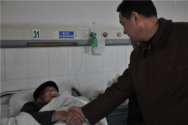 在漣源市人民醫院的病房里,羊小慶親切地握著躺在病床上的老盟員梁兆龍的手,轉達了邵主委的問候與祝福,祝他早日康復,并送上慰問品。梁老十分激動,連連說:“謝謝盟組織的關心!”