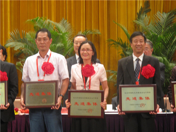 婁底市政協(xié)副主席、民盟婁底市委主委邵瑛(中)出席大會并領(lǐng)取先進集體獎
