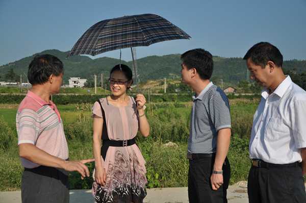 8月19日,邵瑛(左一)在雙峰縣三塘鋪鎮(zhèn)調(diào)研時,聽取鎮(zhèn)領(lǐng)導關(guān)于移民區(qū)的規(guī)劃匯報