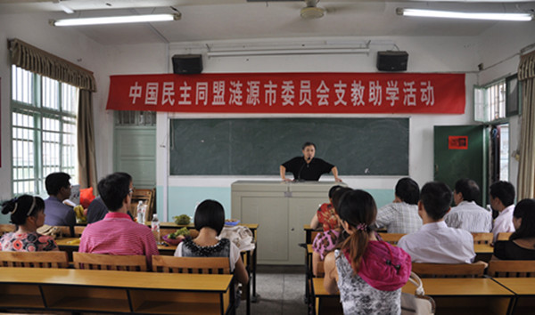 漣源民盟與漣源市第三小學2007年結成新的支教助學對子。市三小是服務東城區的一所主要學校,隨著漣源城市東擴步伐的加快,其生源持續增加,現正在擴建校舍,增加辦學容量,提高辦學質量。每年,漣源民盟都從自身有限的經費中擠出資金,通過選派盟員教師到學校講學、聯合學校教師開展教學創新、組織教師到民盟醫院免費體檢、為學校添置教學文體用品、資助困難學生上學等多種形式支持學校的建設發展。