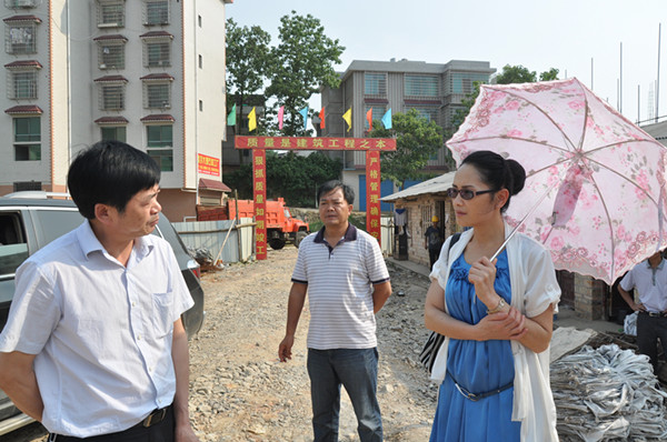 邵瑛(右)等冒著酷暑深入工地了解廉租房建設進度、質量