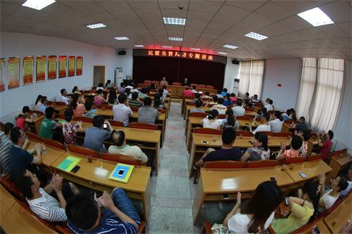 7月11日上午,民盟先賢風骨專題講座在中共婁底市委黨校開講。民盟湖南省委副主委、湖南師范大學博士生導師楊君武教授主講。婁底市政協副主席、民盟婁底市委主委邵瑛主持講座。民盟湖南省委參政議政處處長羅小沙、宣傳處干事王慧芳出席專題講座。